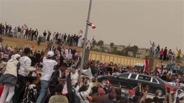 الرئيسان السيسى وماكرون يحييان المواطنين المحتشدين فى مدخل مطار العريش