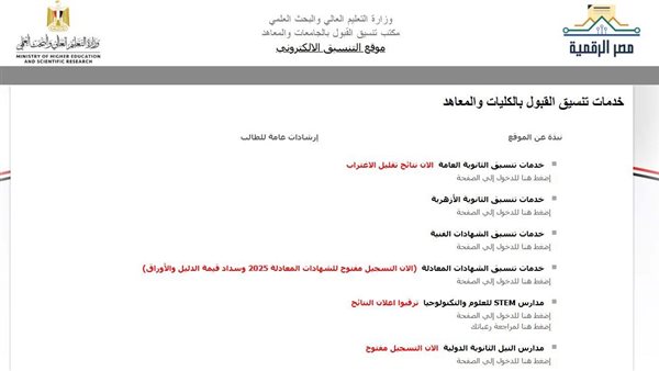 تنسيق المرحلة الثالثة 2025.. 50% حد أدنى للتقديم لطلاب النظامين الحديث والقديم