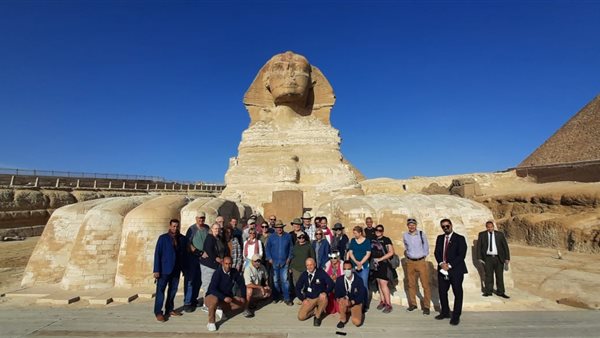 أمام تمثال أبو الهول.. زاهي حواس يستقبل أول وفد أمريكي بعد جائحة كورونا