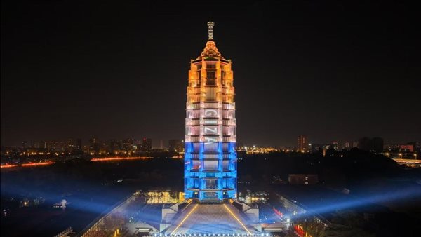 إضاءة برج نانجينج الصيني الشهير باسم الجيزة