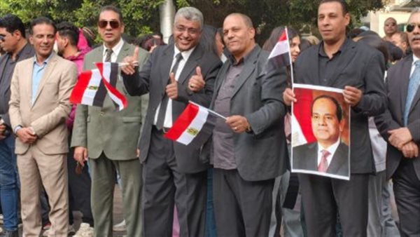 بأعلام مصر وصور الرئيس.. المواطنين يستقبلون «السيسي» أمام مدرسة الشهيد مصطفي يسري أبو عميرة بمصر الجديدة