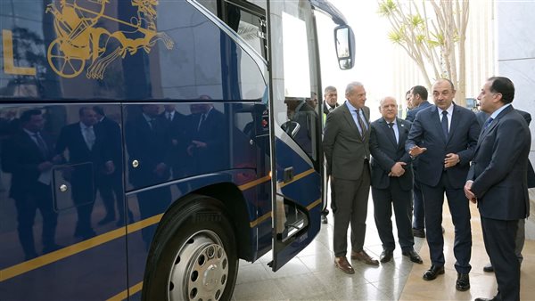 رئيس الوزراء يتفقد نموذجا لأتوبيس سياحى من إنتاج شركة النصر للسيارات.. صور