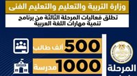 وزارة التربية والتعليم تطلق فعاليات المرحلة الثالثة من برنامج تنمية مهارات اللغة العربية فى ٧ محافظات
