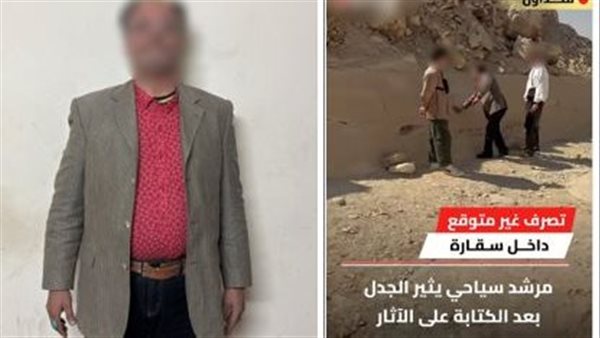 فيديو متداول.. ضبط مرشد سياحي رسم بالطباشير على الآثار في سقارة