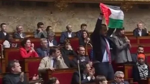 نائب يرفع العلم الفلسطينى داخل الجمعية الوطنية الفرنسية.. ويبرر هناك أطفال يُذبحون بأسلحتنا