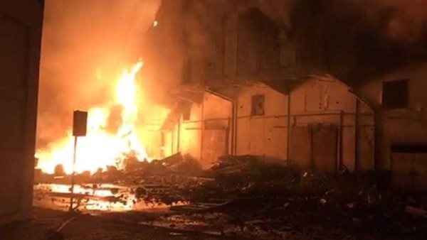 على مساحة ألف متر.. تفاصيل حريق مخزن أحذية بفيصل