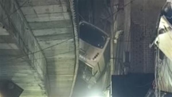 «5 مصابين».. الدفع بمعدات لسحب الأتوبيس العالق بين منزل والطريق الدائري بالجيزة