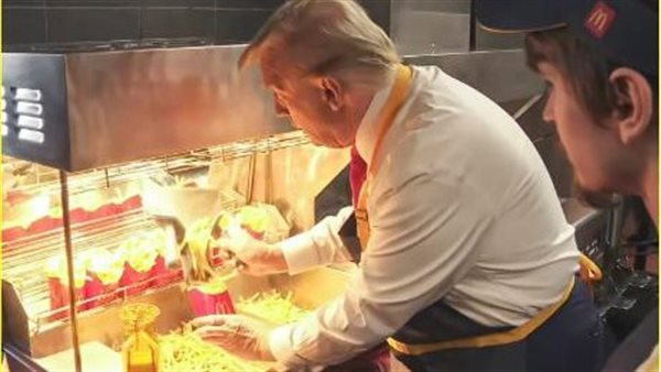 ترامب «بيعبي بطاطس» ويقدم الوجبات السريعة للزبائن في مطعم شهير.. صور