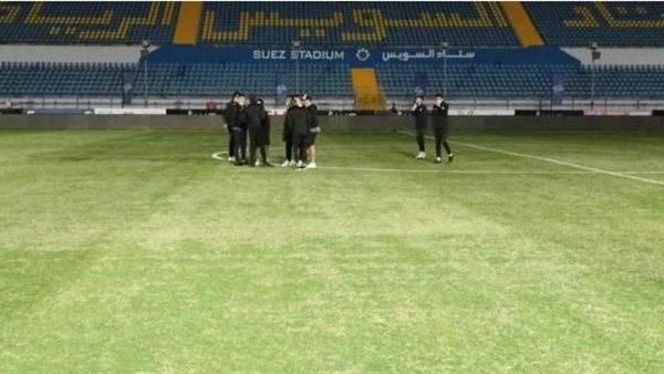 لاعبو الزمالك يعاينون أرضية استاد السويس قبل مواجهة نادي مصر