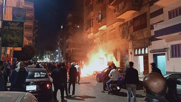 تفحم محل قطع غيار سيارات في شارع ترعة الزمر بالجيزة