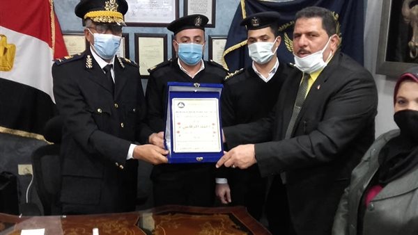 توزيع ورد وشيكولاتة احتفالا بعيد الشرطة بدمياط