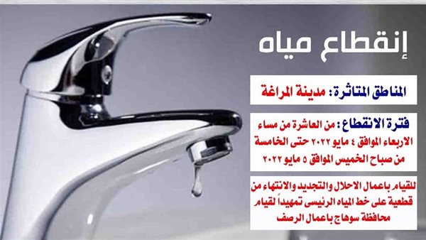 اليوم.. قطع المياه عن مدينة المراغة في سوهاج لمدة 7 ساعات