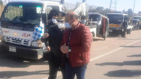 محافظ أسوان يتابع ميدانياً الحملات المرورية لمواجهة مخالفات التوك توك.. صور
