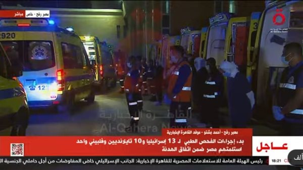 فحص طبى لـ13 إسرائيليا و10 تايلانديين وفلبيني بمعبر رفح