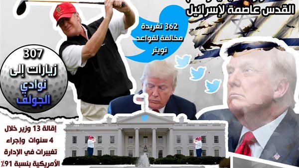 ملك تويتر بـ 25 ألف تغريدة.. قضى ثلث ولايته بالجولف ونواديه الخاصة.. والقدس هدية لإسرائيل.. ترامب في 4 سنوات