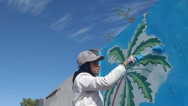 طالبات الثانوية الفنية يجملن أسوار الخارجة برسومات إبداعية في الوادي الجديد