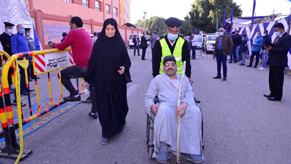 محافظ أسيوط يوجه بمساعدة مسن لتوصيله إلي لجنة الانتخابات بكرسي متحرك