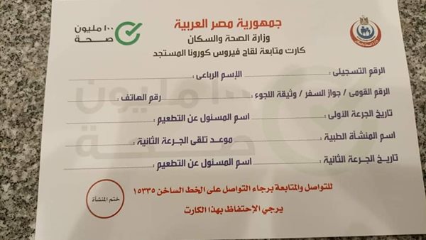 ننشر صورة كارت متلقي لقاح فيروس كورونا