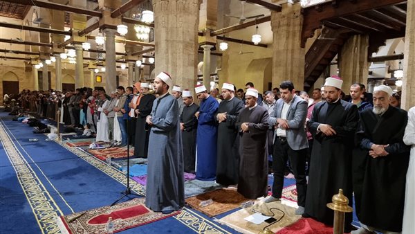 إقبال كبير من المصلين على صلاتي العشاء والتراويح بالجامع الأزهر
