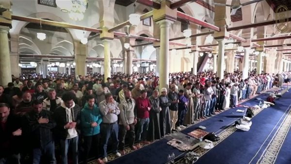 آلاف المصلين يتوافدون لصلاة العشاء والتراويح بالجامع الأزهر