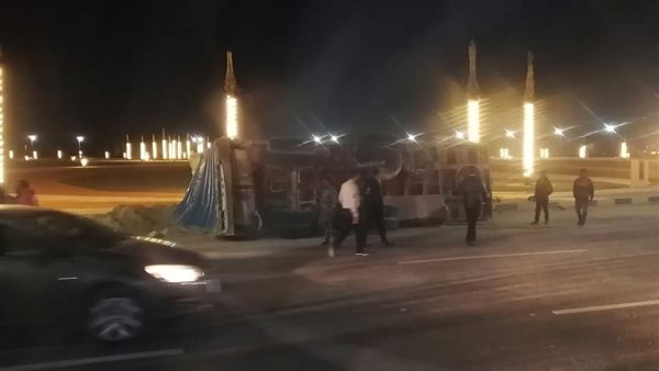 إصابة 7 عمال فى انقلاب سيارة نقل بطريق السويس- السخنة