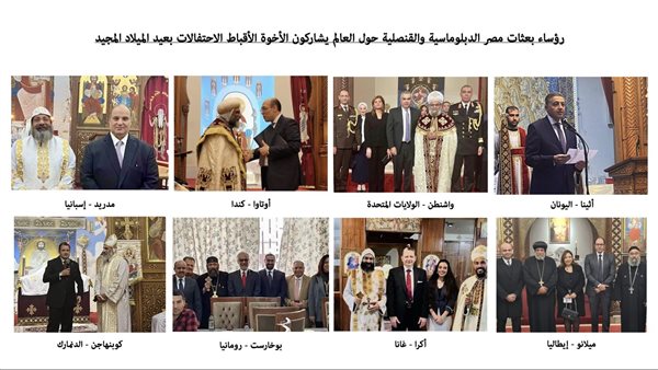 سفراء مصر يشاركون في احتفالات الكنائس بعيد الميلاد وينقلون تهنئة الرئيس السيسي للجاليات