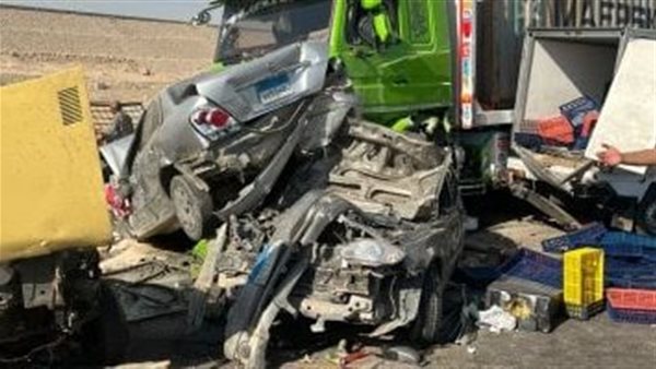 «العربيات اتعجنت».. مصرع وإصابة 10 أشخاص فى حادث تصادم مروع بالطريق الأوسطي
