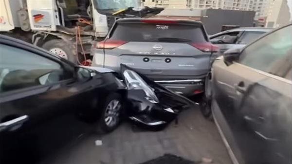 المعمل الجنائى يحصر خسائر تهشم سيارات معرض القطامية