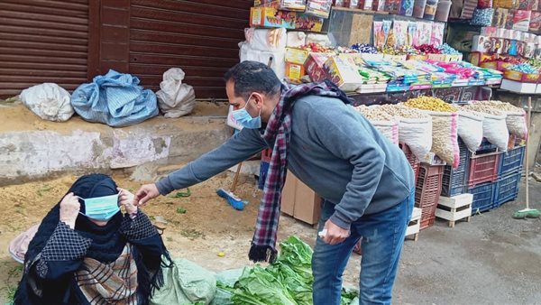 رئيس مدينة يقود مبادرة لتوزيع 3 آلاف كمامة على الباعة الجائلين ببني سويف
