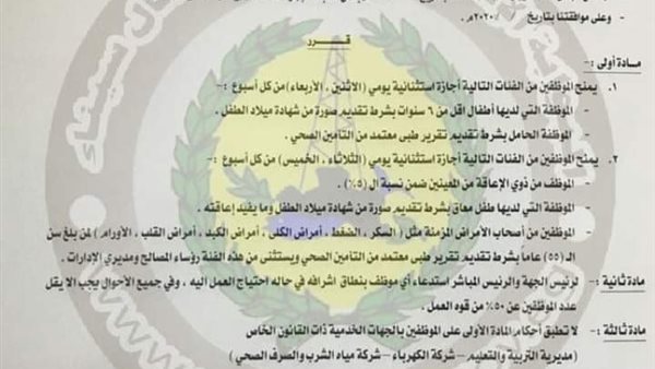 محافظ شمال سيناء يصدر قراراً بمنح إجازات لموظفي الدولة ضمن إجراءات الوقاية من كورونا