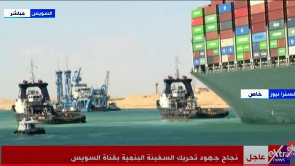 بث مباشر.. نجاح جهود تحريك السفينة الجانحة بقناة السويس
