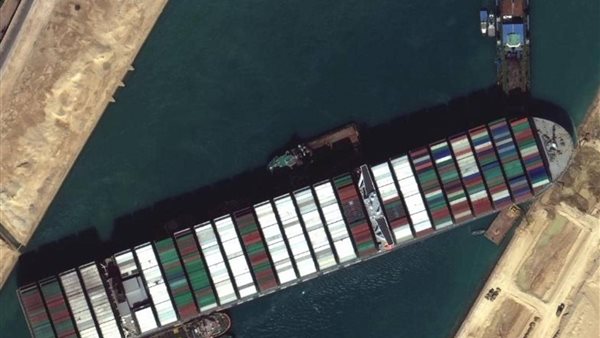 بدء مناورات القطر لتعويم السفينة الجانحة بقناة السويس