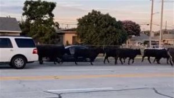 قطيع أبقار يهرب من الذبح لشوارع كاليفورنيا.. فيديو