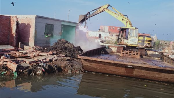 محافظ الدقهلية يقود حملة مكبرة لإزالة 173منزل مخالف بجزيرة العزبي ببحيرة المنزلة.. صور