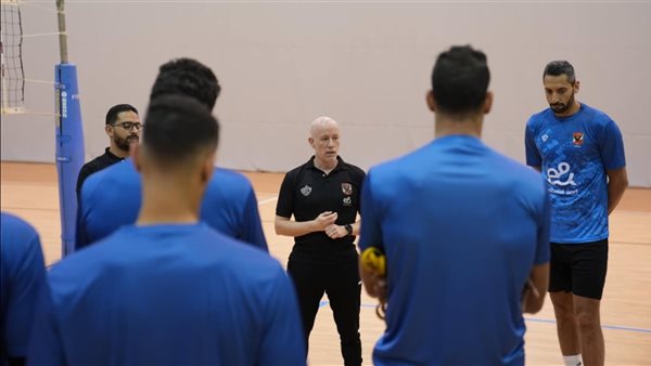 مونوز يعقد جلسة مع «رجال طائرة الأهلي» عقب ختام المران