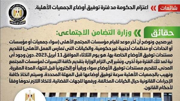 «الحكومة» تنفي مد فترة توفيق أوضاع الجمعيات الأهلية