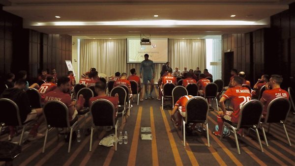محاضرة للاعبي الأهلي بالفيديو استعدادا لمواجهة القطن الكاميروني