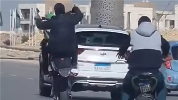 حركات خطيرة.. شباب يؤدون حركات استعراضية بالدراجات النارية في السادس من أكتوبر