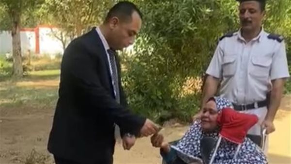 قاضٍ يساعد سيدة مسنة على الإدلاء بصوتها داخل لجنة كيما بأسوان