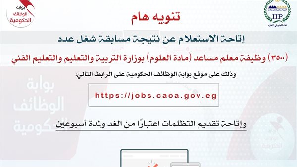 3500 وظيفة| رابط نتيجة مسابقة معلم مساعد علوم.. وبداية التظلمات غدًا ولمدة أسبوعين
