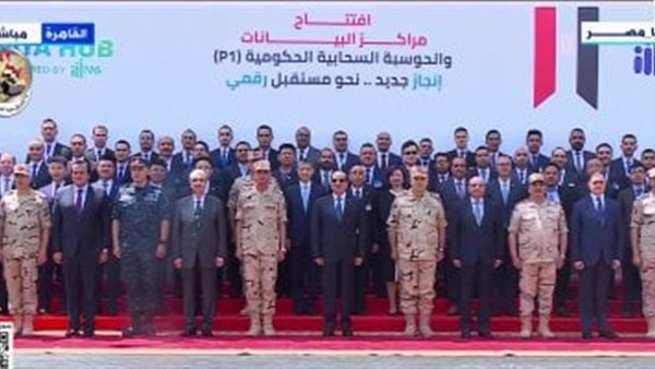 الرئيس السيسي يتوسط صورة تذكارية عقب افتتاح مركز البيانات والحوسبة السحابية