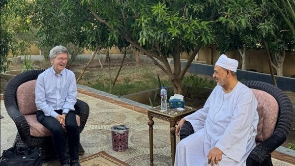 بالجلباب الصعيدي.. شيخ الأزهر يستقبل المفكر العالمي جيفري ساكس بمنزله في الأقصر