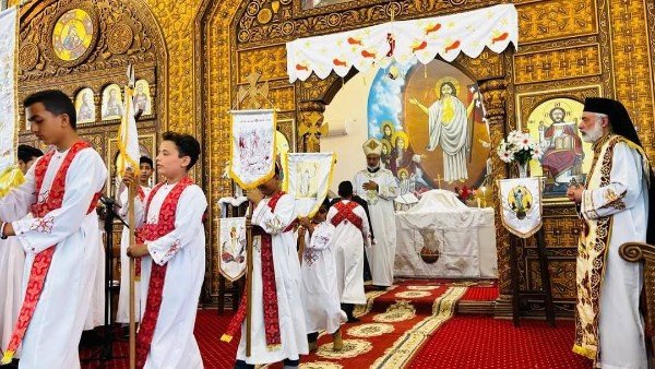 الأنبا باسيليوس يترأس قداسًا بالمنيا للصلاة من أجل البابا فرنسيس ويحتفل باليوبيل الفضي للأم روزا