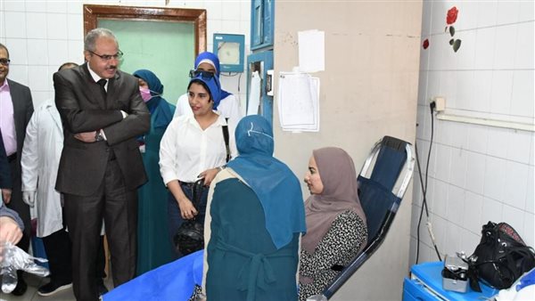 رئيس جامعة قناة السويس يتقدم فوج الطلاب الثاني لحملة التبرع بالدم.. صور