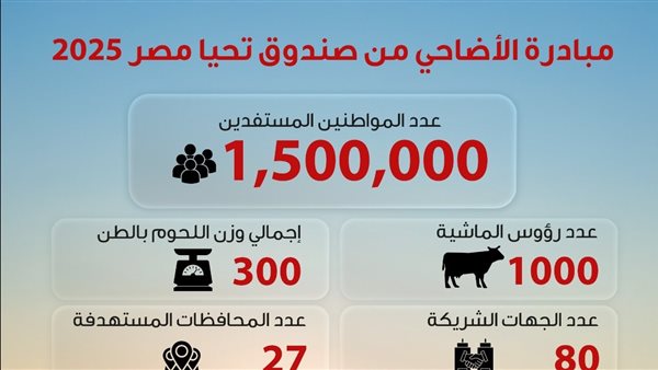 صندوق تحيا مصر: توزيع لحوم الأضاحي على 1.5 مليون مستفيد من الأسر الأولى بالرعاية