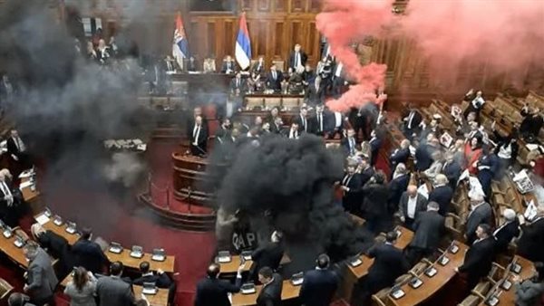 ضربوا بعض بالقنابل.. خناقة بين نواب البرلمان الصربى داخل القاعة "فيديو"