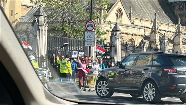 الجالية المصرية في لندن تحتفي بمفتي الجمهورية أمام مبنى البرلمان البريطاني