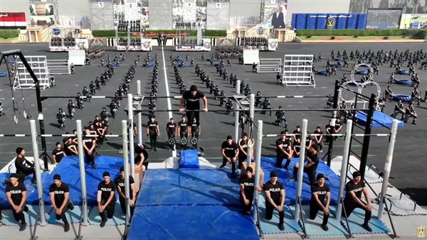 طلاب أكاديمية الشرطة يستعرضون مهاراتهم البدنية أمام الرئيس السيسى