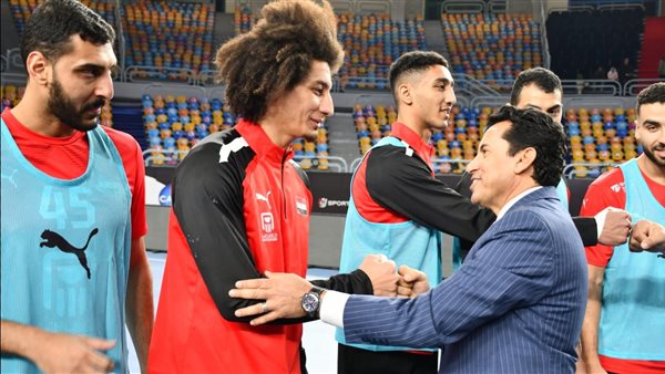 وزير الرياضة يؤازر لاعبي منتخب مصر لليد قبل لقاء غينيا