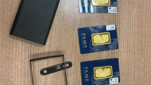 ضبط 6 ركاب حاولوا تهريب سبائك ومشغولات ذهبية داخل الحذاء والباور بانك.. صور